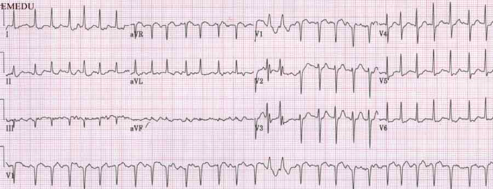 a. ECG will show a regular wide QRS complex tachycardia resembling a ventricular tachycardia as seen in Figure 1.6