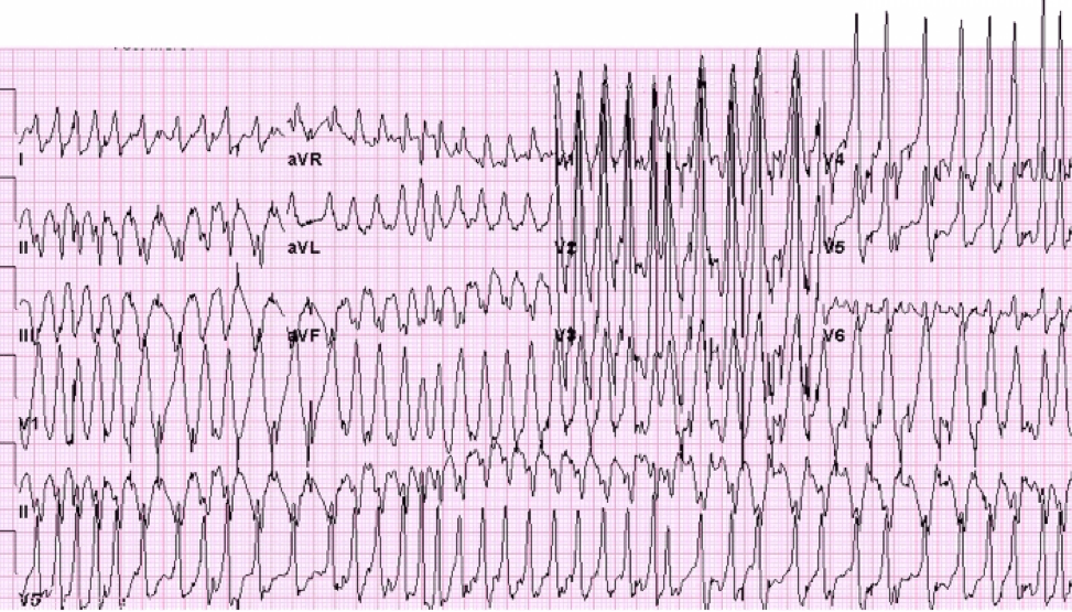 a. This rhythm resembles a ventricular tachycardia (VT), even though etiology is slightly different; however, treatment is identical.6
